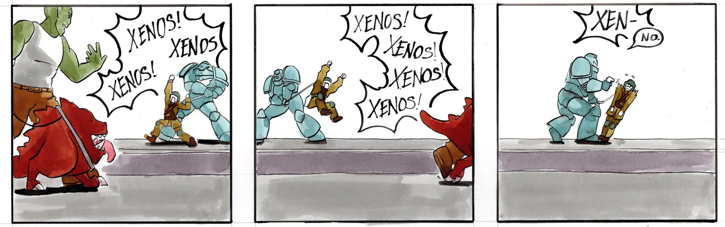 Ork & Squig need to stay on the opposite side of the street when they see Guardsman and Marine.